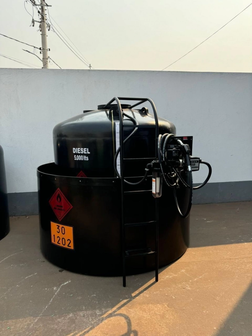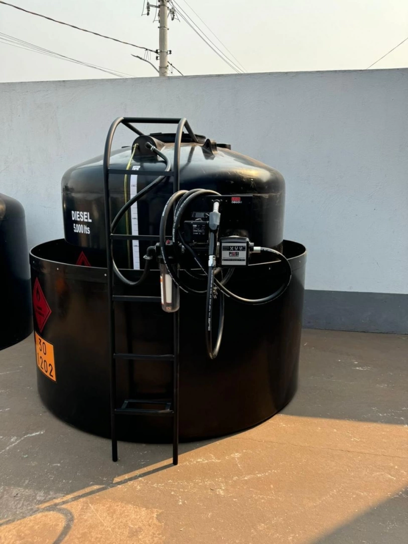 Tanque aéreo estacionário para diesel com contenção.